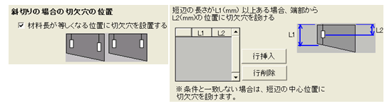 ・ 斜切り製品の場合の、切欠き穴の設置位置を登録