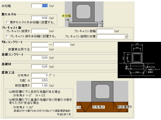 ・ 基礎断面形状を登録し、数量表に反映させます。