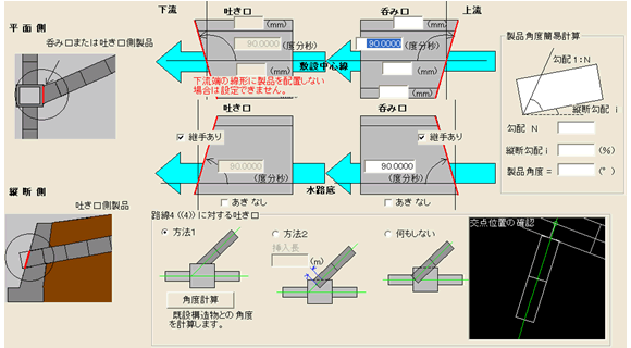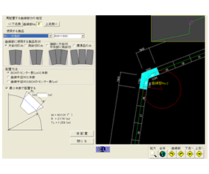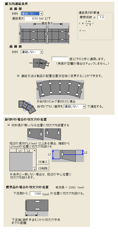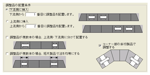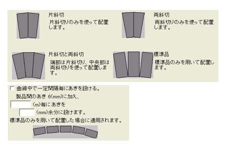 ・ 曲線部の配置方法(片斜切,両斜切,片斜切+両斜切,標準品)