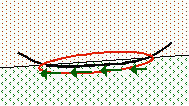 1.断層面に沿って一定の厚さをもった断層破砕帯が形成されていることは珍しいことでは ありません。このような破砕帯があると予想される場合に利用して下さい。 2.図1のような滑り面では、赤で囲んだ部分につきましては 部分の土質強度を使用して計算を行います。ですが本当は赤で囲ってある部分の土質強度としましては、 の 部分やもしくは別の土質強度(図2)で計算したい場面があると思います。そういった場合にご利用下さい。 |