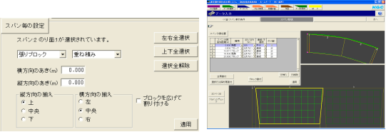 ・ 平面図・縦断図・横断図から展開図を自動作成し、ブロック割付図を自動作成します。